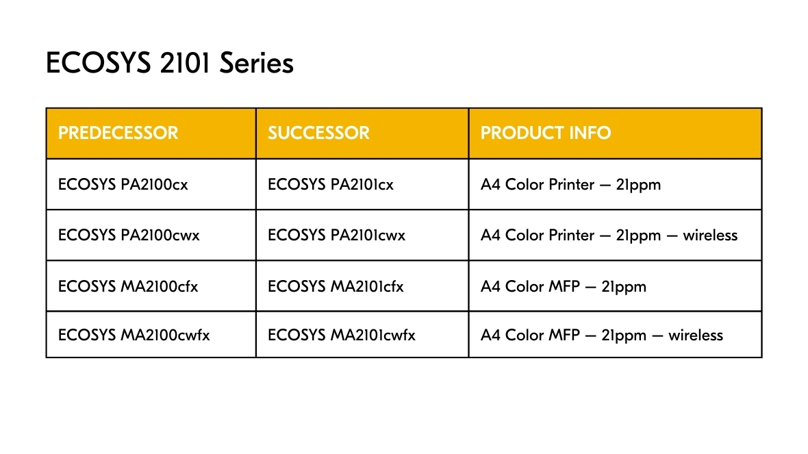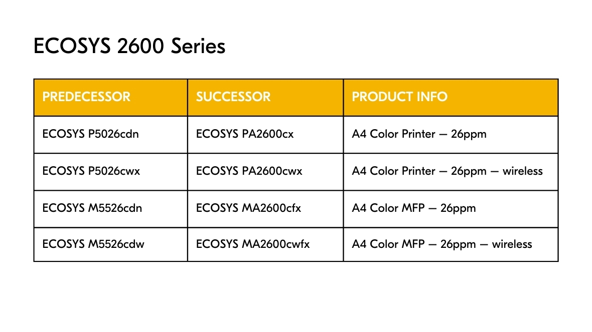 Deze ECOSYS-apparaten zijn op de markt gebracht om een verbeterde gebruikerservaring te bieden via een verbeterde interface, geavanceerde beveiligingsfuncties en naadloze cloudconnectiviteit.